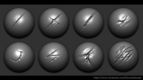 zbrush金属石头裂纹破损刻痕笔刷资源素材30 ...